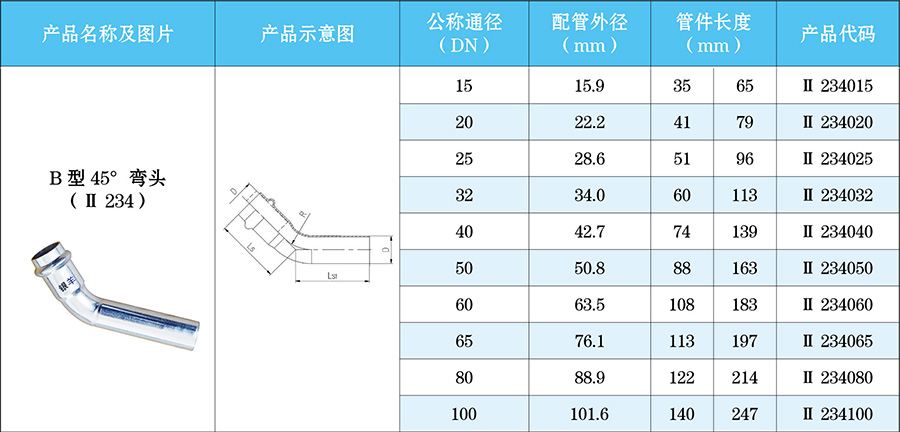 管道安裝中常用的一種連接用管件,連接兩根公稱通徑相同或者不同的管子,使管路做一定角度轉彎,公稱壓力為1-1.6Mpa。